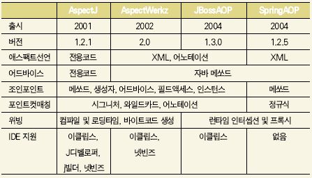 것 같다. 하지만 한편으로는 표준을 빨리 제정하기 보다는 아직은 AOP는 발전하고 진화해야