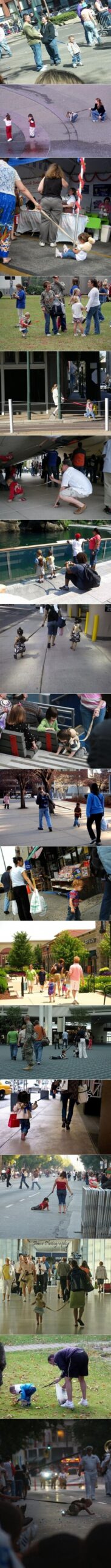아이에게 가방을 씌우고, 가방에 달려 있는 줄을 잡고 있으면…애가 …못 도망 간다나???