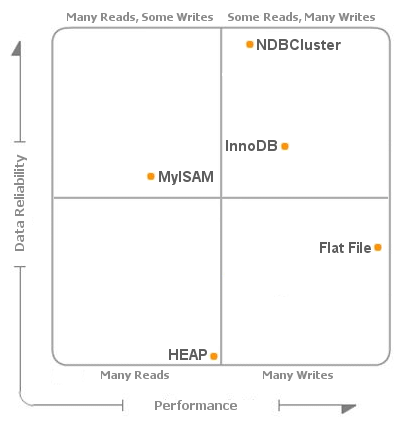 적은 비용으로 DBMS를 운용하기 위해 MySQL이 활용되고 있습니다. MySQL에서는 MyISAM과 InnoDB를 지원하고 있는데 어떤것을 사용해야 할지 고민 할 때가 있습니다. 몇 가지 자료를 찾아 보던 중 간략하게 도식화한 자료를 발견 했습니다.